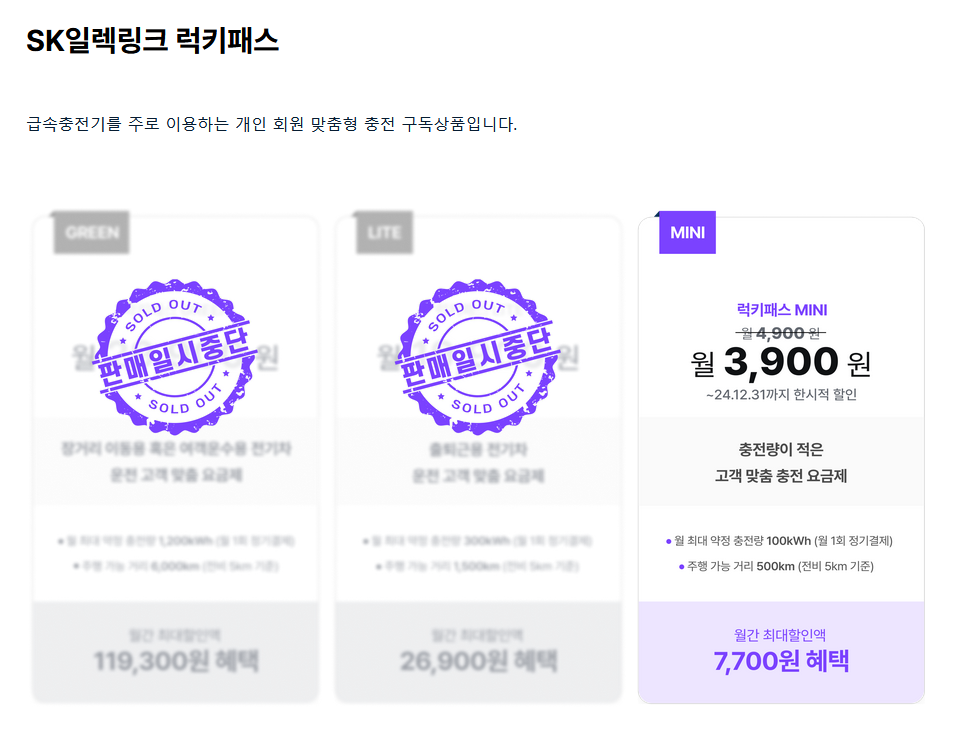 SK일렉링크에서 구독서비스도 하고 있어 가입시 요금혜택이 있을까해서 찾아봤다. 월간 주행거리가 몇 km 이상되면 구독서비스를 신청했을 경우 좀더 저렴할 수 있기 때문이다. 그런데 확인해보니 굳이 구독서비스를 신청할 필요는 없을거 같다.