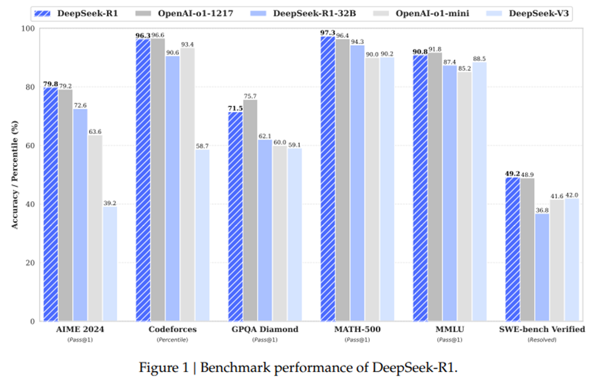 ○ OpenAI-01-1217 모델과 비슷하거나 능가하는 추론능력을 다양한 벤치마크를 통해서 입증함