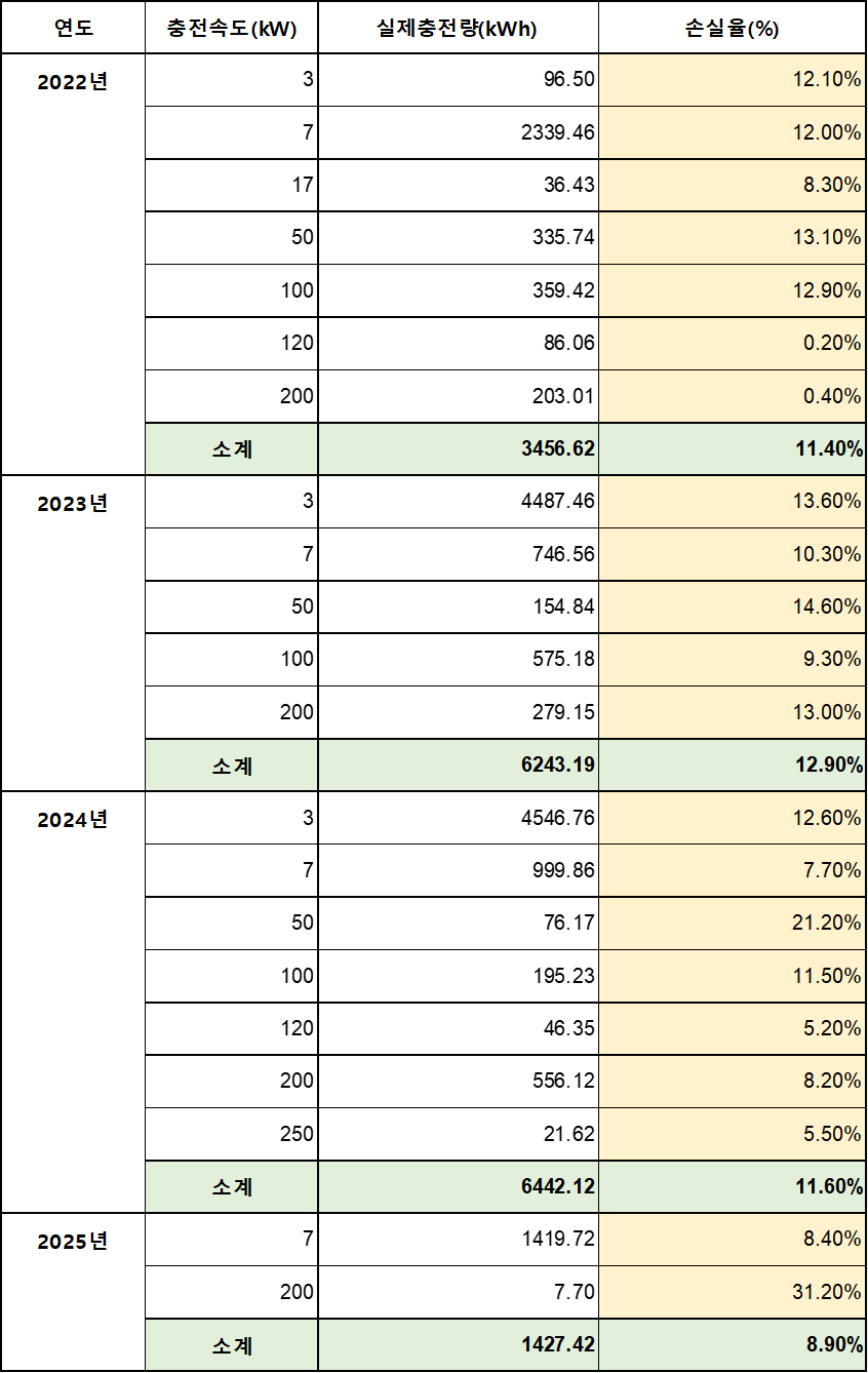 14. 충전속도별 충전손실율을 비교해 본다면 완속에서는 7kWh, 급속에서는 250kWh급에서 가장 효율이 좋았음.