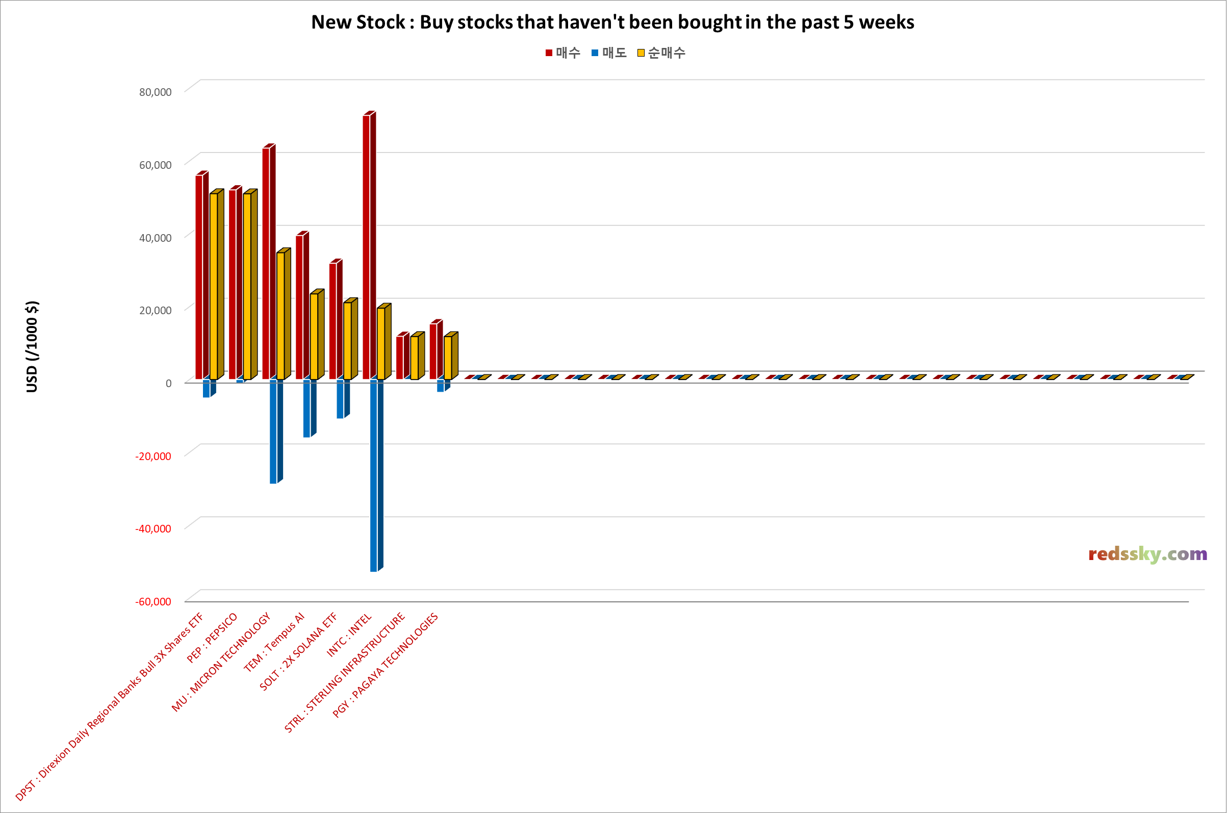 - 지난주 DPST > PEP > MU > TEM > SOLT 순으로 지난 5주간 순매수금액이 가장 많았던 해외주식들 중에서 이전까지는 확인할 수 없었던 종목들이 대거 편입되었다.