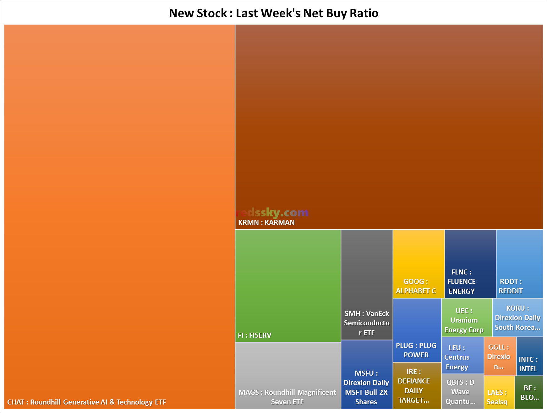 - 지난주 새롭게 순매수된 종목 중에서 CHAT, KRMN 은 상대적으로 매수규모가 컸다.