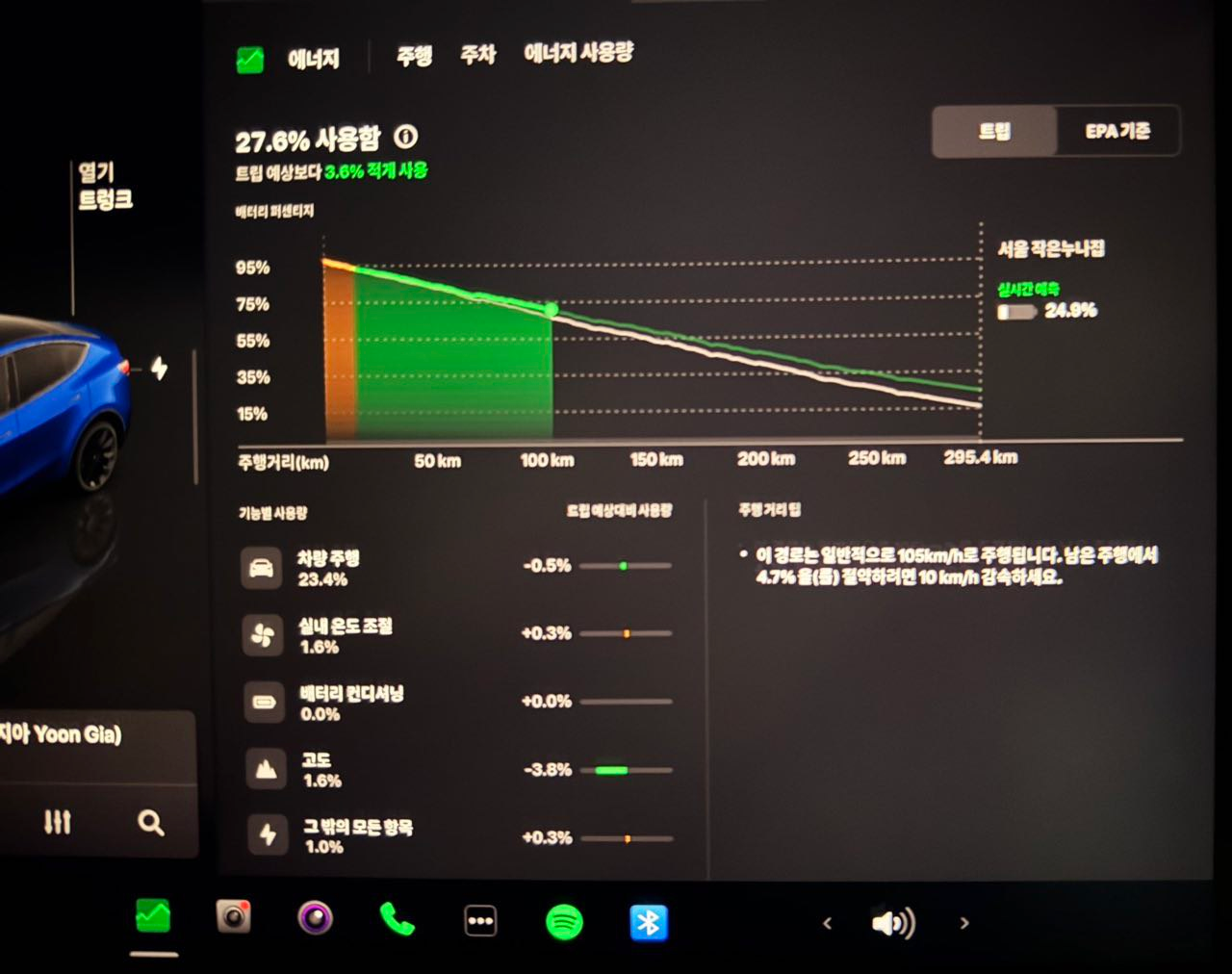 - 에너지 앱은 특정조건에서 특정경로에 대한 테슬라 차량의 평균속도를 표시할 수 있음
