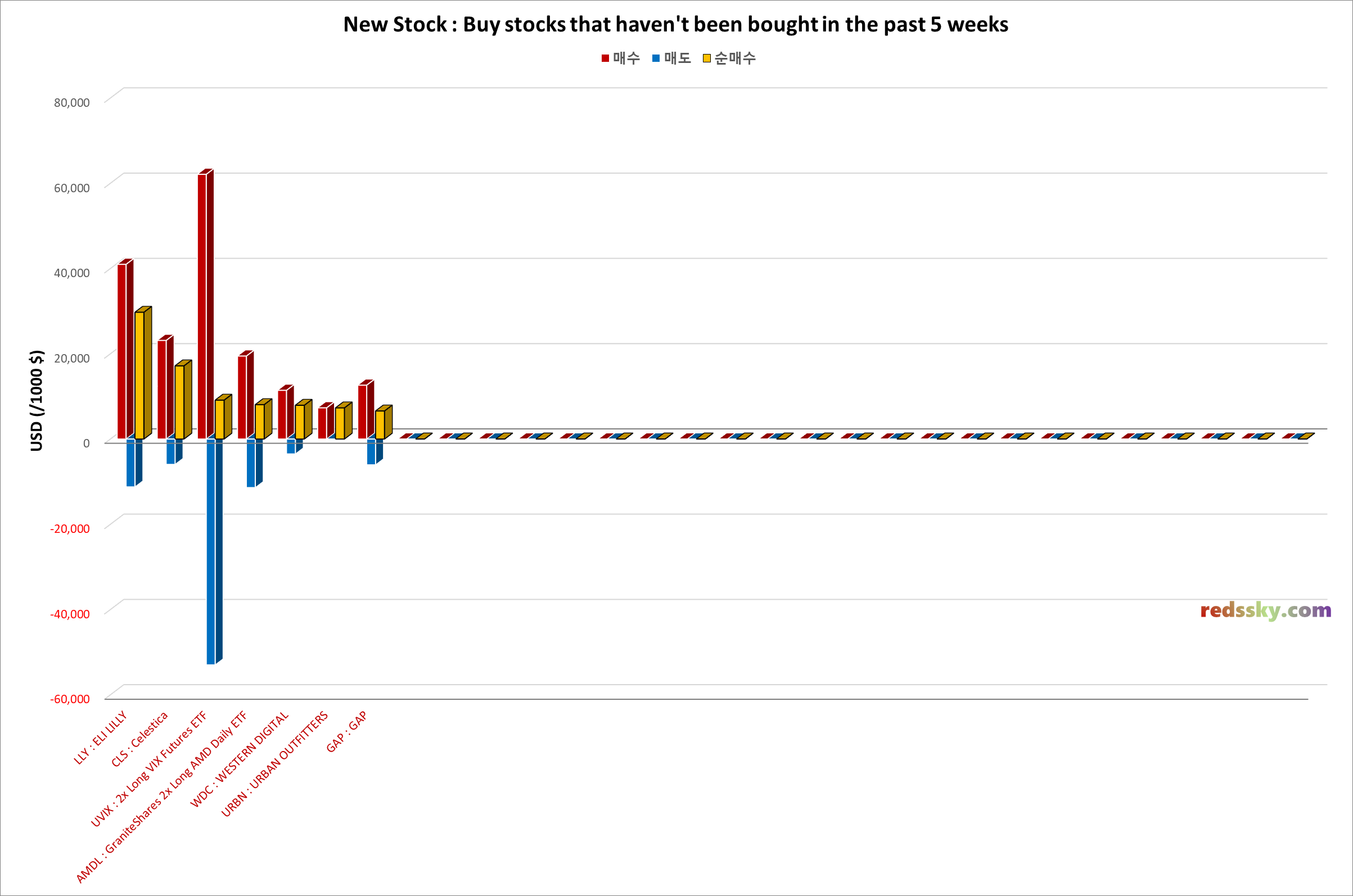 - URBN > CLS > LLY > WDC > GAP 순으로 순매수비율이 높았다.