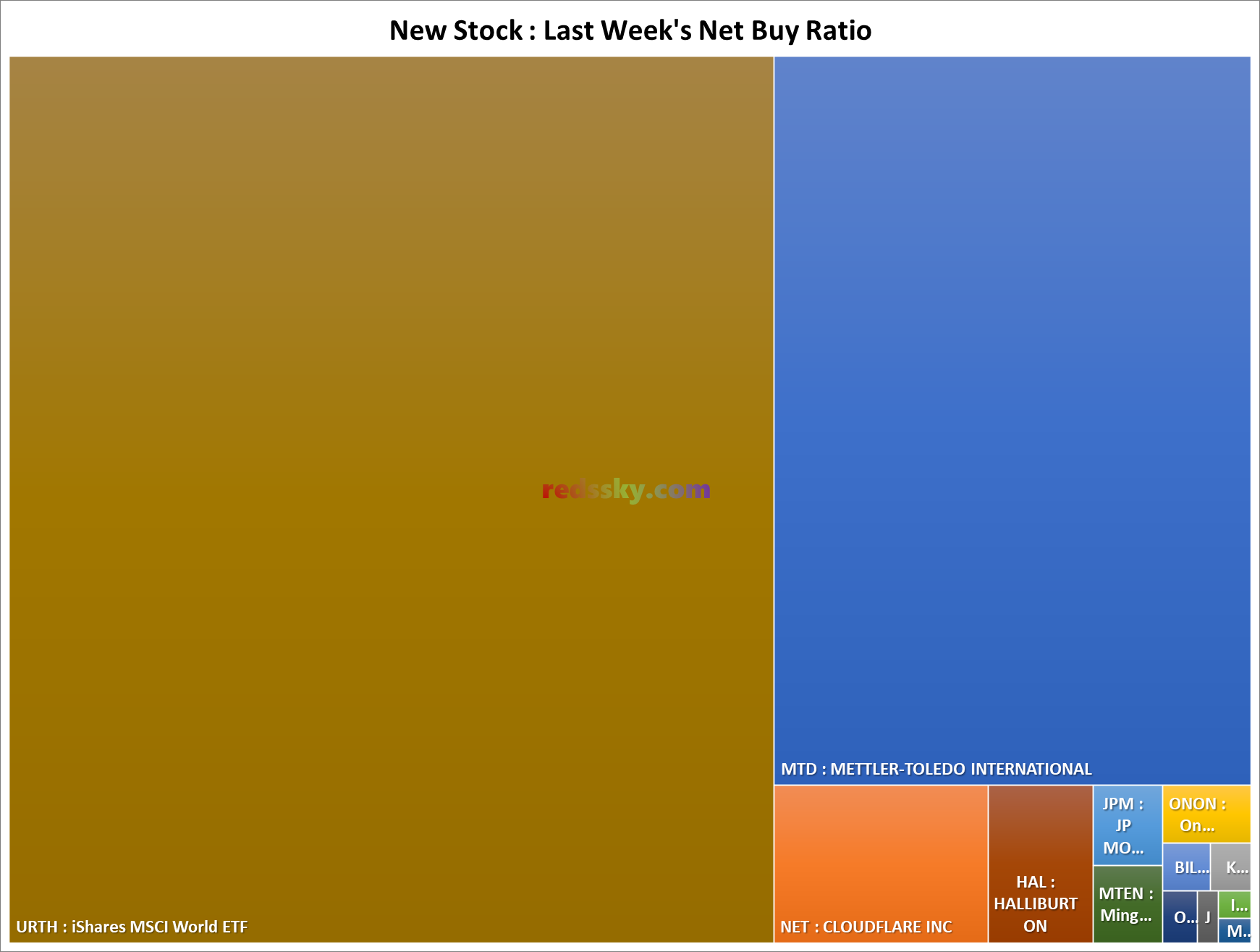 - URTH > MTD > NET > HAL > JPM 순으로 순매수 되었다.