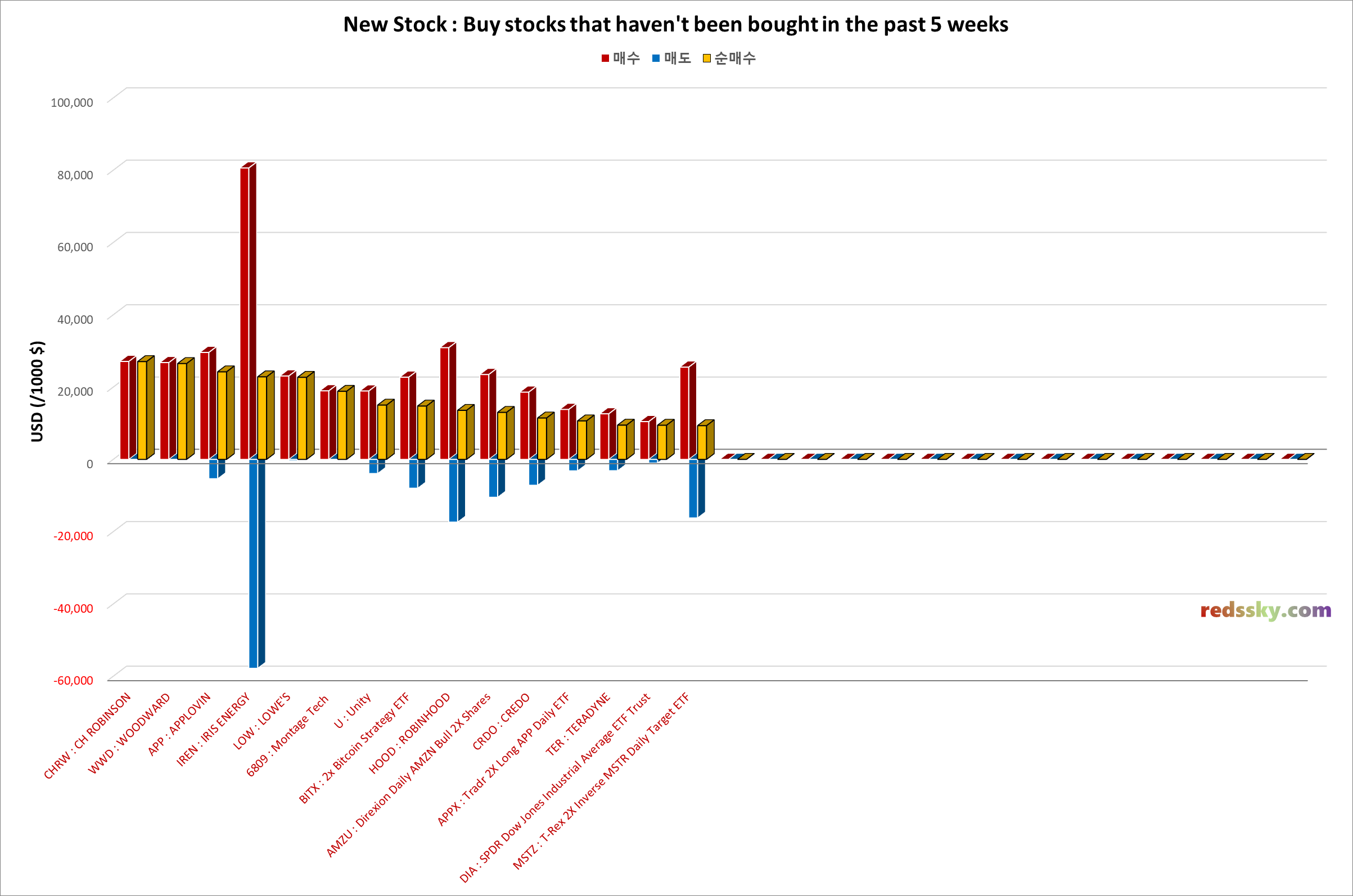 - CHRW > WWD > APP > IREN > LOW 순으로 순매수 되었다.