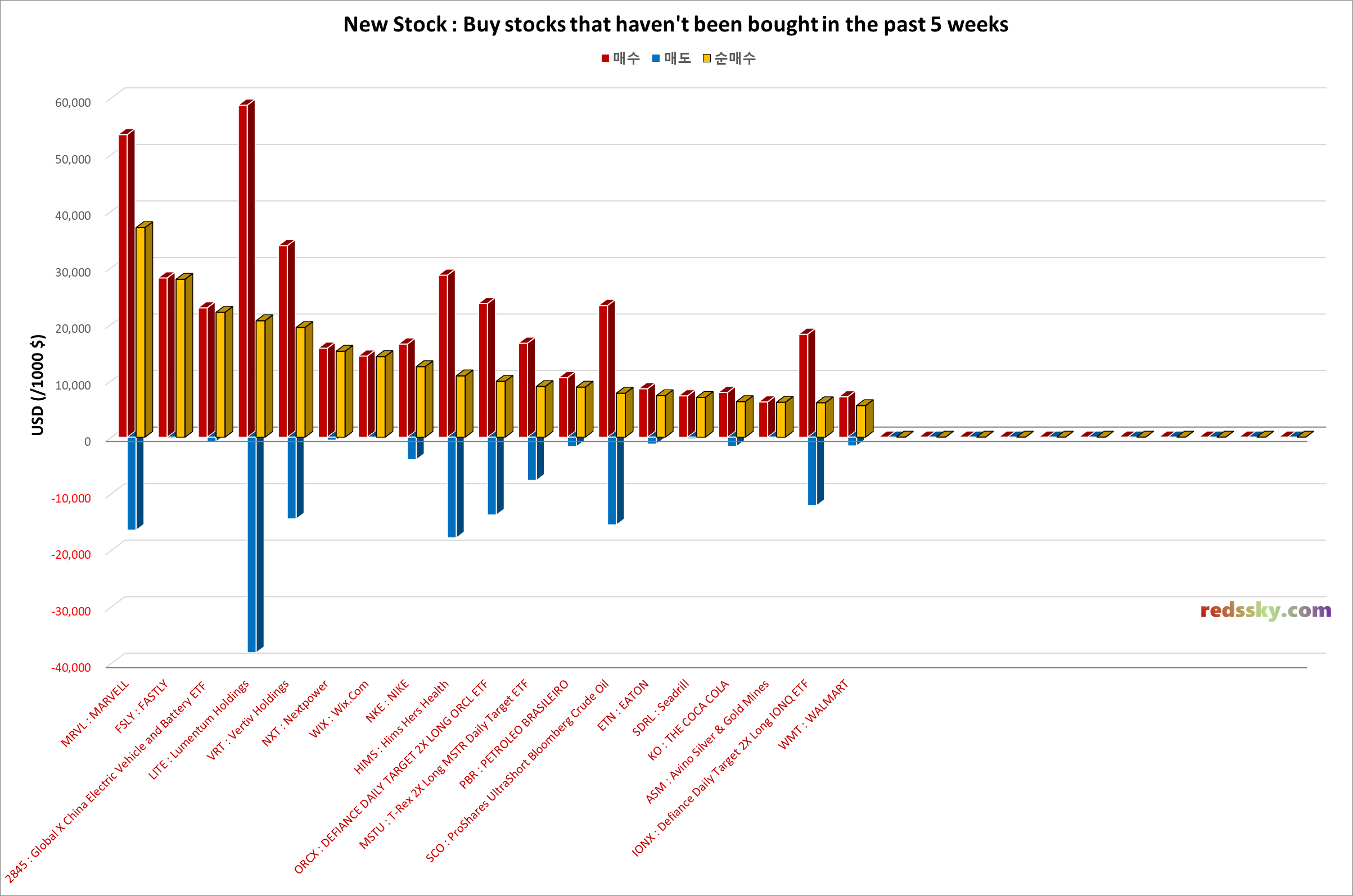 => 순매수 금액기준으로 MRVL, FSLY, 2845, LITE, VRT 등임