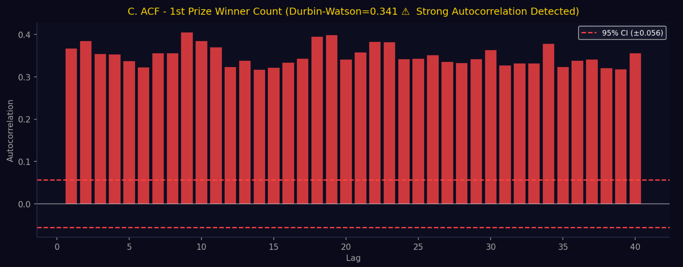 05. ACF = Autocorrelation Function (자기상관함수) 차트 - 1st Prize Winner Count