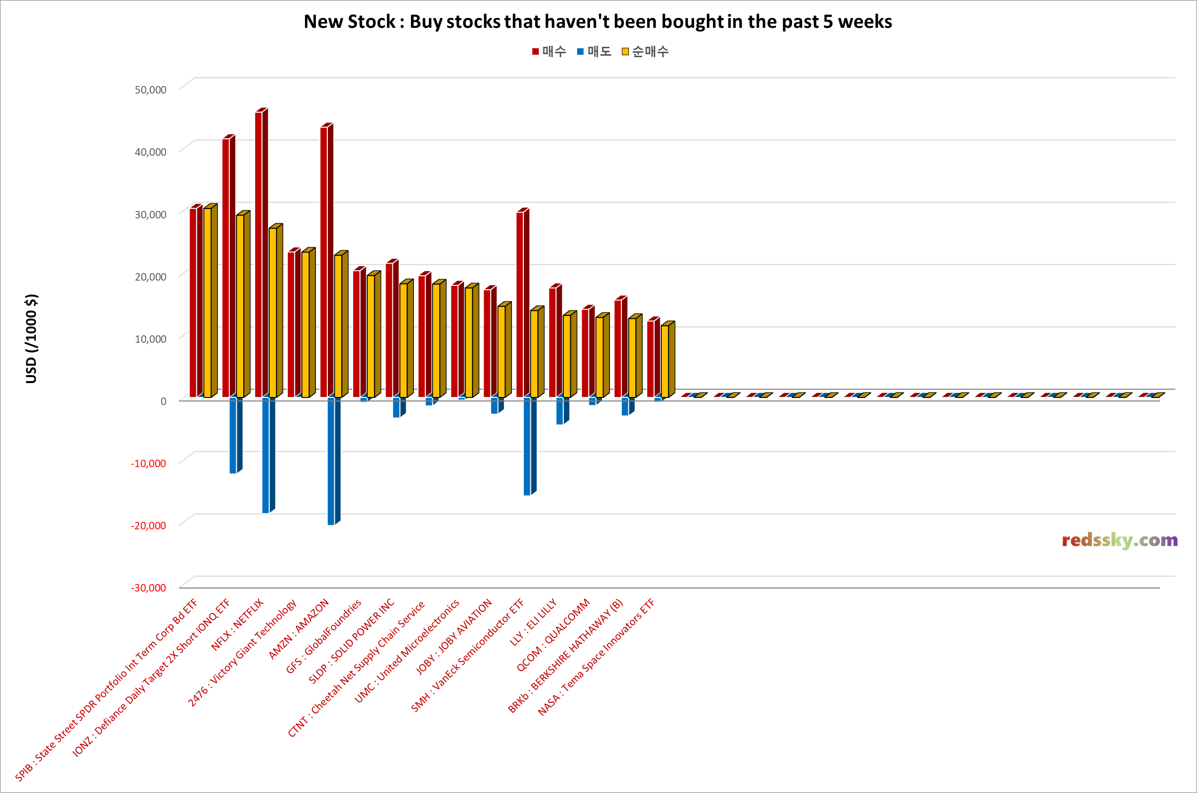 => 순매수 금액기준으로 SPIB > IONZ > NFLX > 2476 > AMZN 등임
