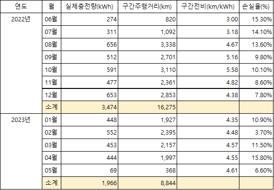 07. 2023년 2월에 손실율이 급격하게 줄어들었는데... 휴게소에서 100kW급으로 충전하는데 오류가 있었음. 그래서 효율이 급격하게 좋아진 것으로 나타났음